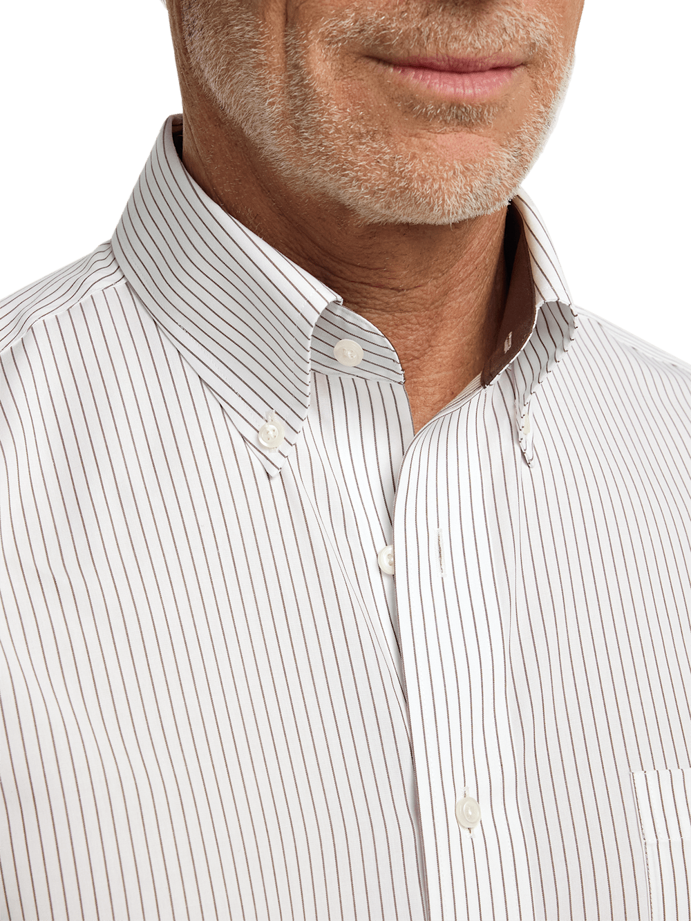 Non-Iron Cotton Stripe Dress Shirt With Contrast Trim