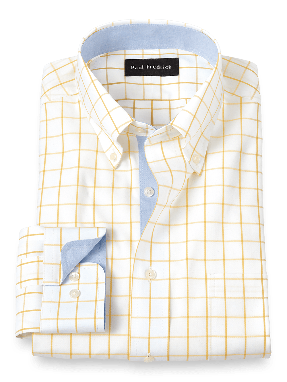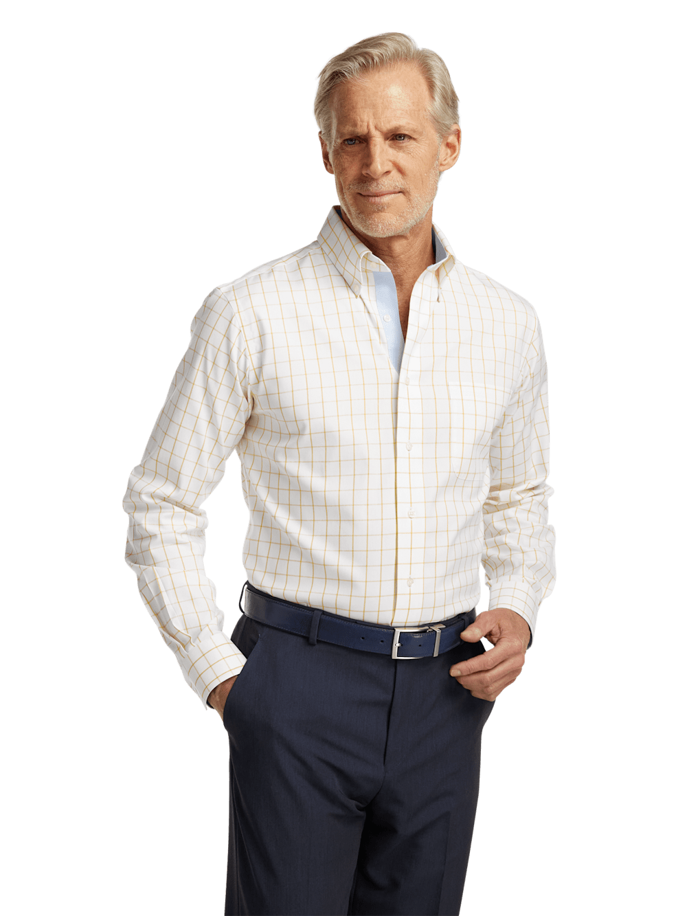 Comfort Stretch Non-Iron Check Dress Shirt With Contrast Trim - Yellow