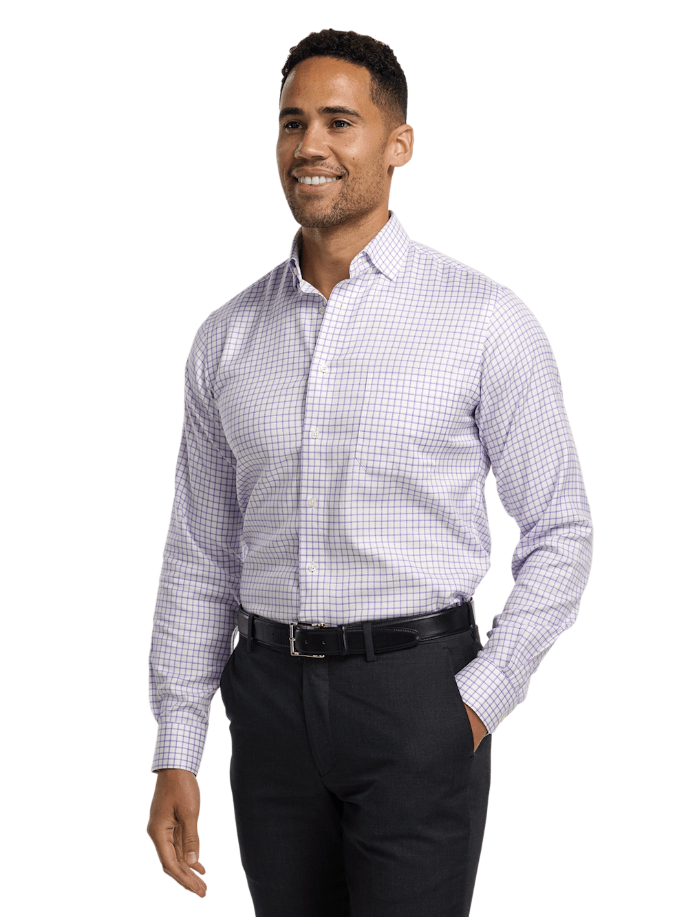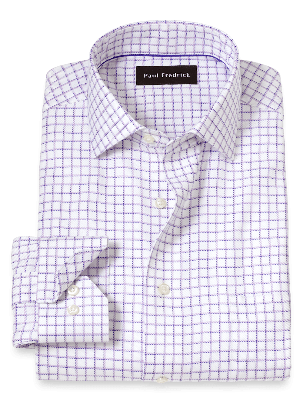 Non-Iron Cotton Windowpane Dress Shirt With Contrast Trim - Purple