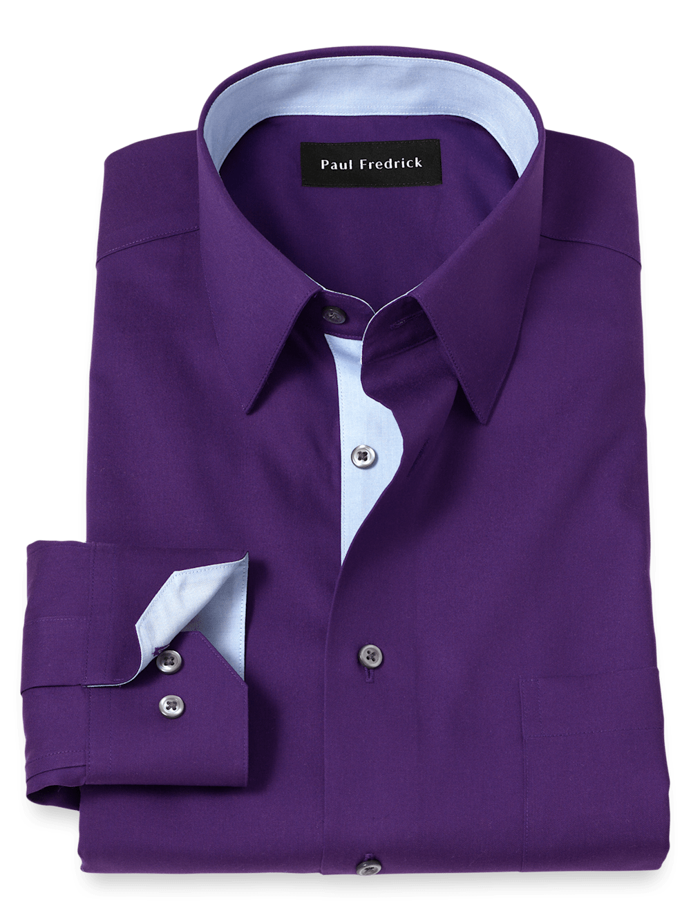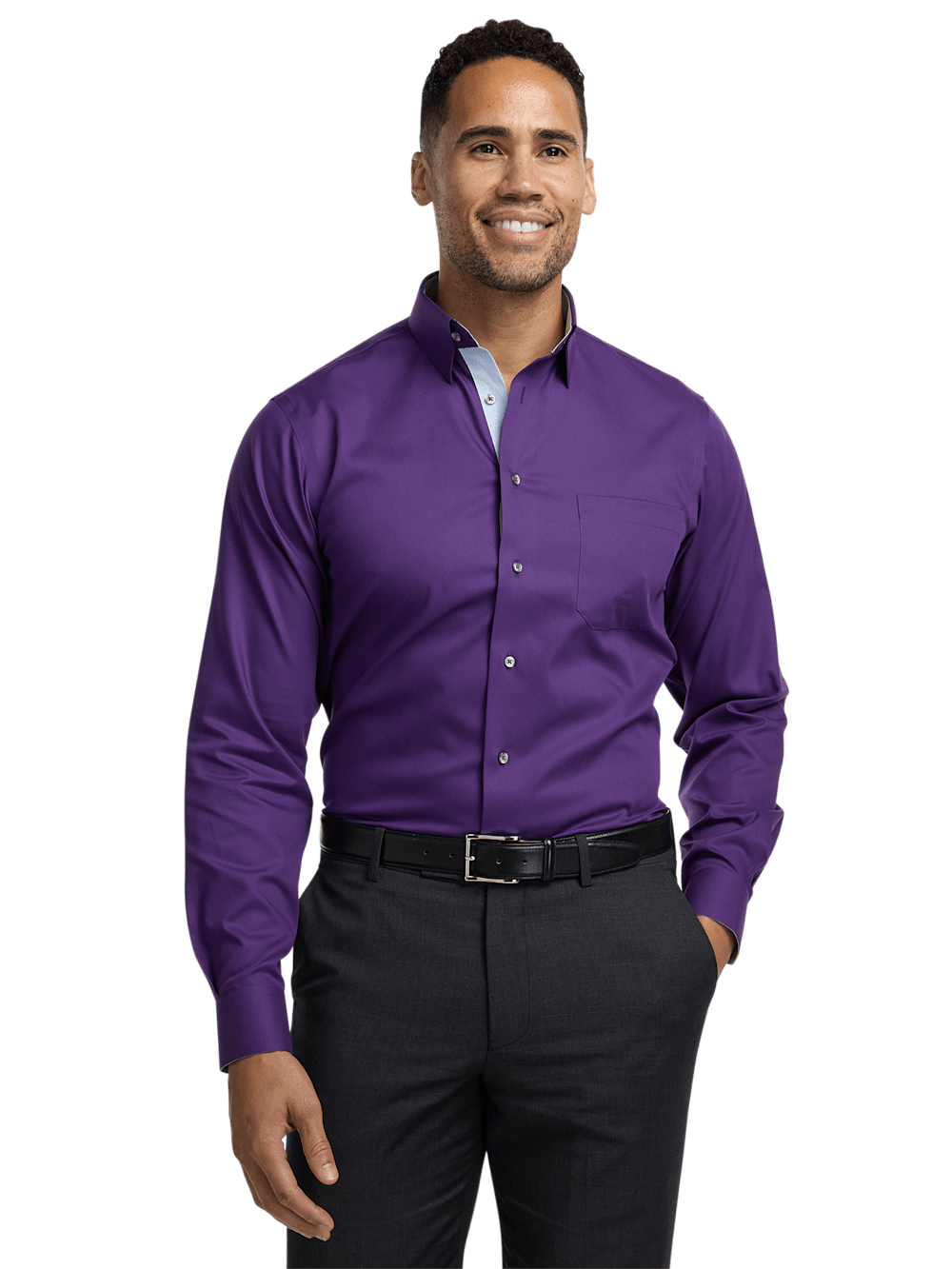 Comfort Stretch Non-Iron Solid Dress Shirt With Contrast Trim - Purple