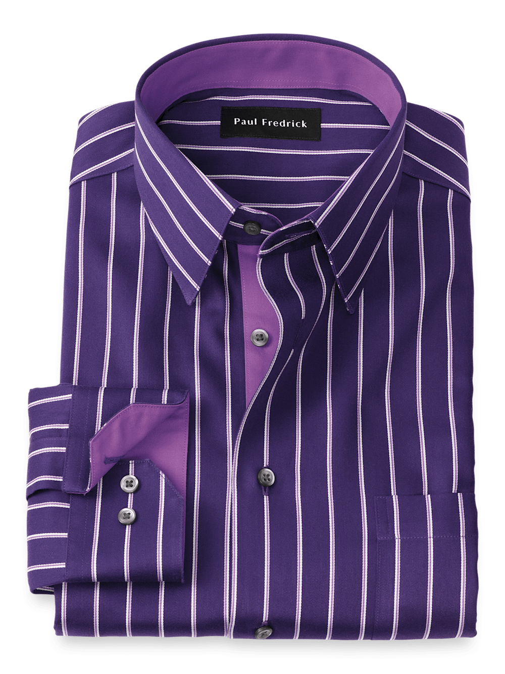 Non-Iron Cotton Stripe Dress Shirt With Contrast Trim - Purple