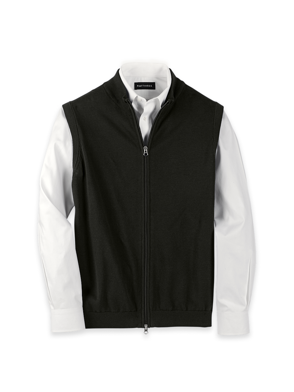 Cotton Full Zip Mock Neck Vest - Black Sale price$149.00