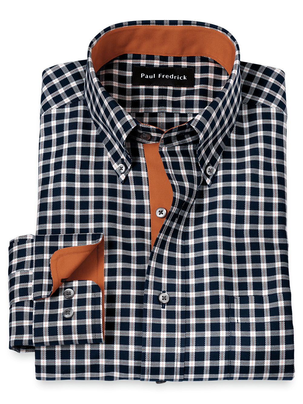 Non-Iron Cotton Check Dress Shirt With Contrast Trim - Black/rust