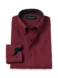 Non-Iron Cotton Houndstooth Dress Shirt With Contrast Trim