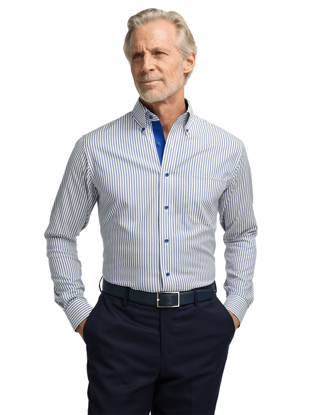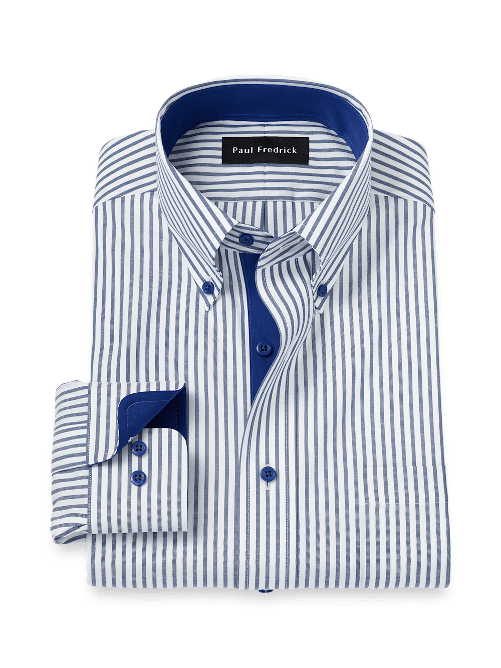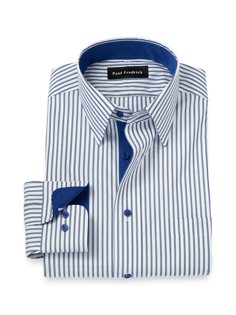 Paul Fredrick's collection of men's navy blue dress shirts is a must-have for any fashion-conscious man. These dress shirts are designed with the highest level of craftsmanship, ensuring that they will last for years to come. Plus, our navy dress shirts come in a range of styles, from classic to modern, or from button-down collars to spread collars, ensuring that there is a dress shirt to suit any personal style. Our navy blue dress shirts are both versatile and classic, making it a great option for a variety of occasions. Whether worn with a suit or paired with relaxed chinos, these dress shirts add a touch of sophistication to any outfit. Paul Fredrick also offers a range of customization options, allowing customers to select their preferred collar style, fit and cuff type, ensuring that each navy shirt is tailored to make you look good and feel good. Shop our range of navy blue dress shirts for a timeless pieceâ€â€perfect fit guaranteed.