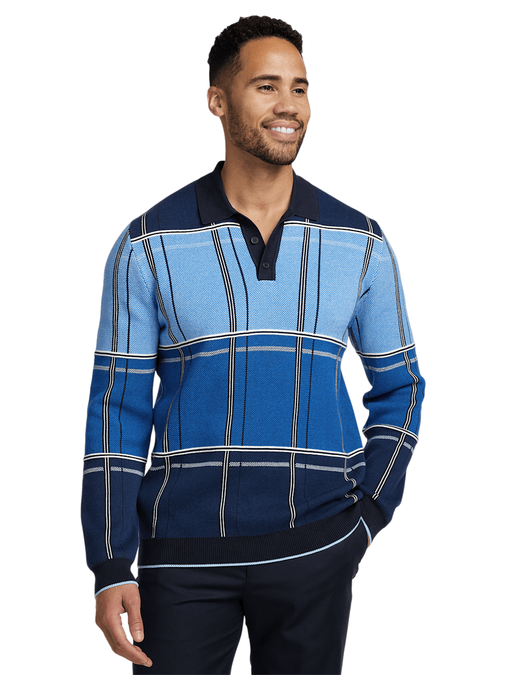 Plaid polo shirts are a unique and stylish twist on the classic polo shirt design. These shirts feature a distinctive pattern of intersecting horizontal and vertical lines that create a checkered or tartan-like effect. At Paul Fredrick, our plaid polo shirts are known for their versatility. They can be dressed up or down depending on the occasion. For a casual look, pair a plaid polo shirt with shorts or jeans. For a dressier option, style it with chinos or slacks. Available in a variety of colors and styles, from muted and classic to bold and modern, finding a plaid polo shirt that suits your personal style and preferences is simple. Our plaid polo shirts are crafted from high-quality fabrics to provide enhanced breathability and comfort for all-day wear. They also offer a comfortable fit that allows for ease of movement. Paul Fredrick's collection of plaid polo shirts are a great option for those looking to add some variety and personality to their wardrobe. With their unique patterns and versatile style, shop our plaid polo shirts for both fashion and function.