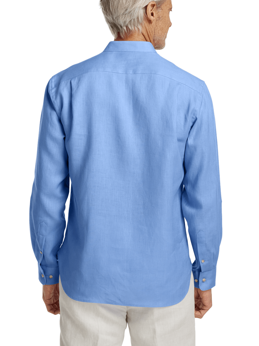 Our Easy Care Linen stays crisp without losing its laid-back feel. The band collar is a nice changeup. With a sense of relaxed sophistication, it gets smart in a different sort of way