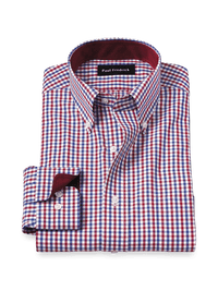 Non-Iron Cotton Gingham Dress Shirt With Contrast Trim